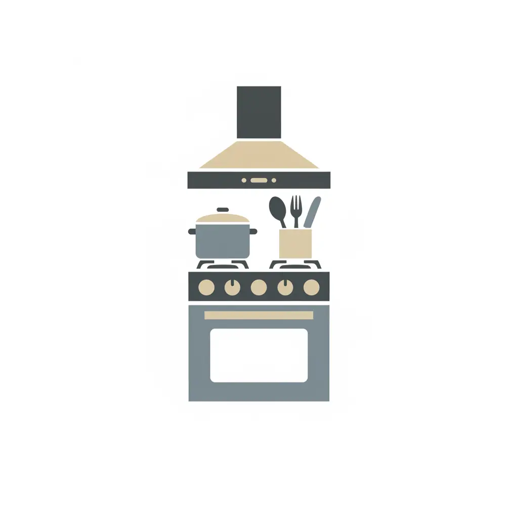 Moderní kuchyň se sporákem, myčkou, lednicí a mikrovlnnou troubou.